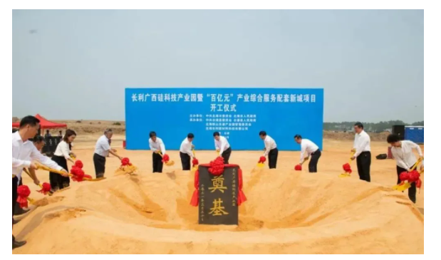 3月30日上午,長利廣西硅科技產(chǎn)業(yè)園暨“百億元”產(chǎn)業(yè)綜合服務(wù)配套新城項目開工儀式在北海鐵山東港產(chǎn)業(yè)園舉行。市委書記蔡錦軍宣布項目開工。