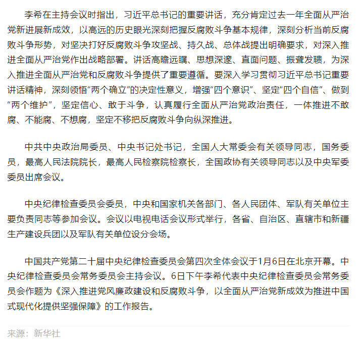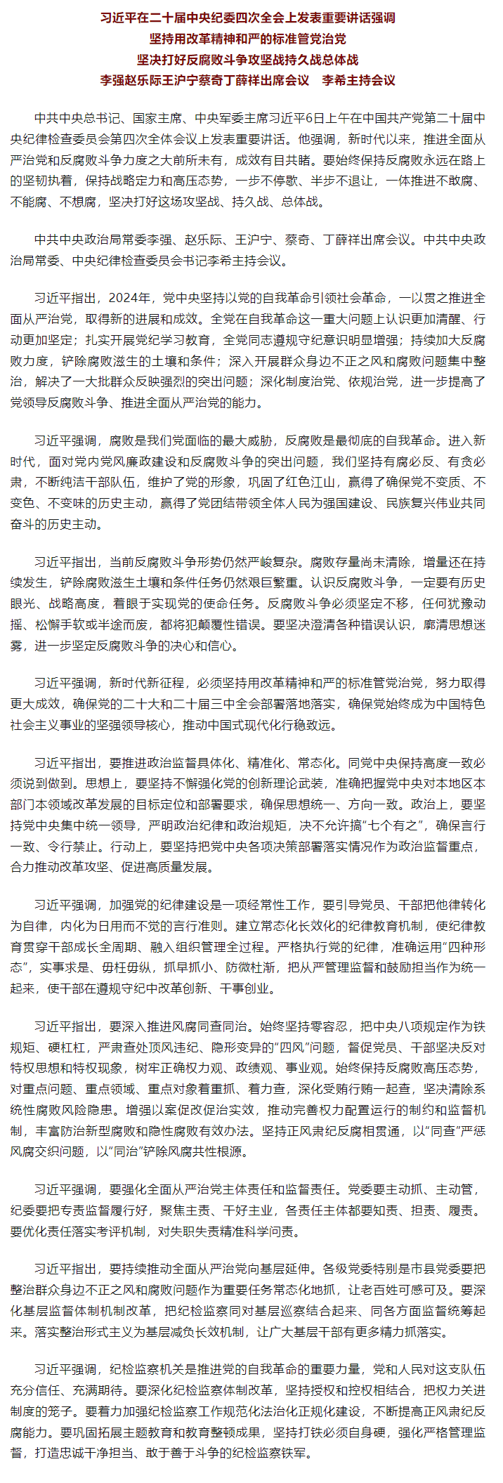習近平在二十屆中央紀委四次全會上發(fā)表重要講話