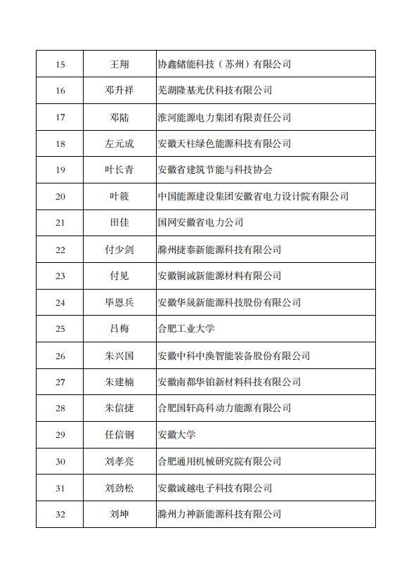 附件:安徽省先進(jìn)光伏和新型儲(chǔ)能專家?guī)焓着鷶M入庫專家名單