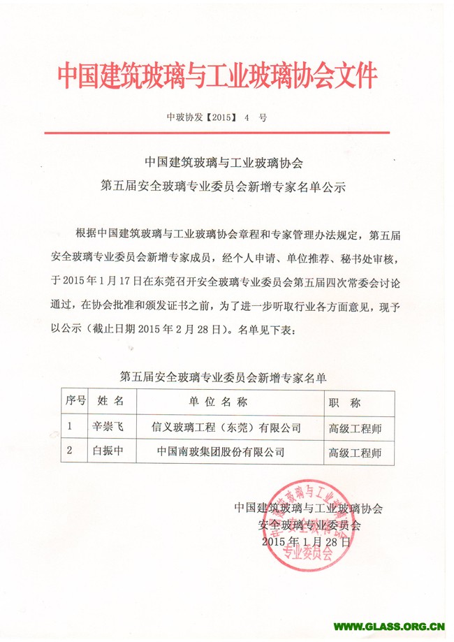 平板玻璃專業(yè)委員會專家名單公示