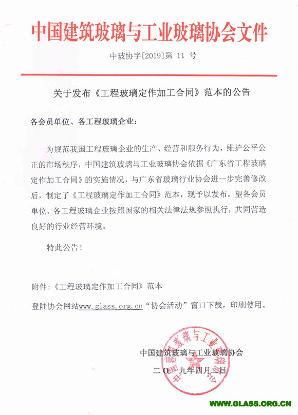 關(guān)于發(fā)布《工程玻璃定作加工合同》范本的公告
