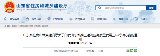 關(guān)于印發(fā)山東省推進(jìn)建筑業(yè)高質(zhì)量發(fā)展三年行動方案的通知