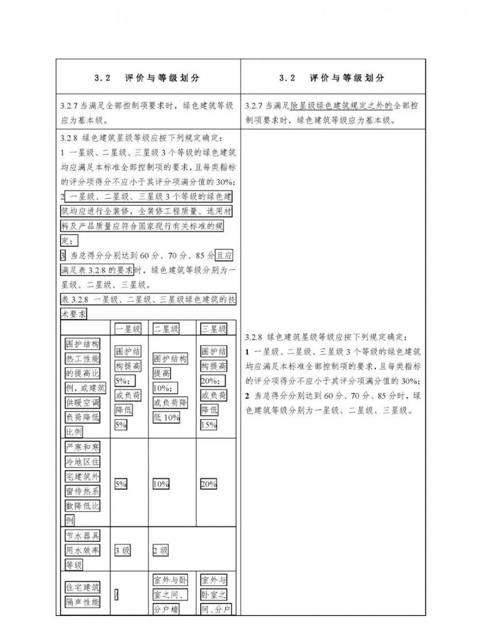 2 當總得分分別達到60分、70分、85分時,綠色建筑等級分別為一星級、二星級、三星級。